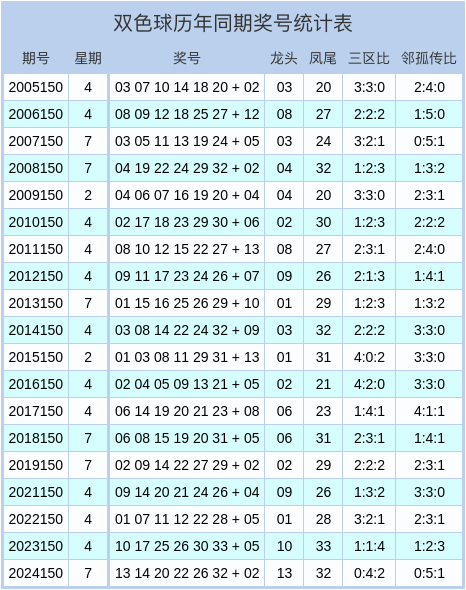 双色球历史同期奖号统计图