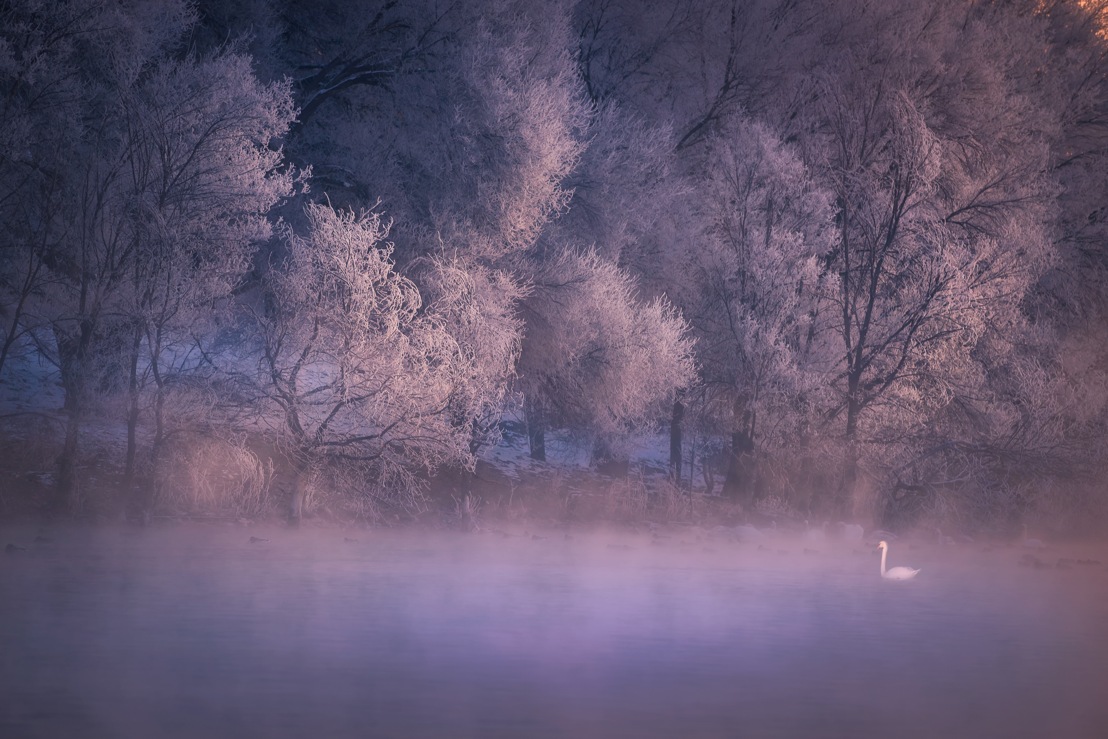 绝美的天鹅湖,是冬季最值得打卡的仙境。银色的雾凇林立,澄澈的湖水粼粼,纯洁的白天鹅,还有氤氲的水雾弥漫,一切都是那么梦幻,置身其中,宛如人间仙境。